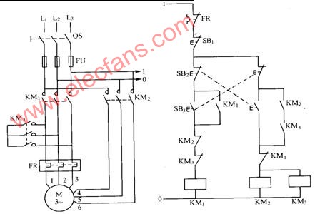 顯然,這套線路任何一種速度要轉(zhuǎn)換到另一種速度時,必須先按下停止按鈕,因為三個接觸器之間是電氣互鎖的。