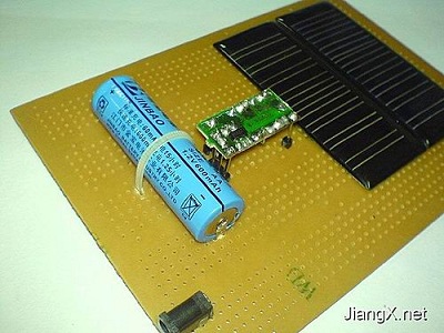 因為我們是要用太陽能電池板來給電池充電的,畢竟太陽能電池板產(chǎn)生較高電壓的機會不多,電池自身電壓過高后會導(dǎo)致充電無法進行。對于我手頭的這一種太陽能電池板,在室內(nèi)靠窗光線比較好的地方輸出電壓便可達到1.2伏以上(連接在電路中時,非空載狀態(tài)下),這樣就開始給額定電壓為1.2V的電池充電了,但如果要使它輸出3V以上的電壓就恐怕要拿到太陽底下去了。用一節(jié)電池儲能的好處就是可以大大降低充電對光強的要求,延長給電池充電的時間。