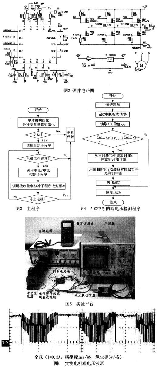 無(wú)刷直流電機(jī)的無(wú)位置傳感器控制的難點(diǎn)在于轉(zhuǎn)子位置信號(hào)的檢測(cè),目前國(guó)內(nèi)外研究人員提出了諸多方法,其中反電動(dòng)勢(shì)法最為簡(jiǎn)單、可靠,應(yīng)用范圍最廣泛。普遍采用的控制方案為基于DSP的控制和基于專用集成電路的控制等,但是其價(jià)格高、體積大,不利于用在微型電機(jī)控制器中。本文介紹基于C8051F330單片機(jī)、檢測(cè)反電動(dòng)勢(shì)法的無(wú)位置傳感器無(wú)刷直流電機(jī)的控制器,系統(tǒng)結(jié)構(gòu)簡(jiǎn)單,體積超小型,價(jià)格低廉,運(yùn)行性能良好。