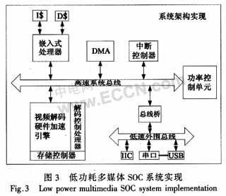 在多媒體SOC中,為了保證服務質量,系統的設計目標必須是面向最高負載情況。然而在實際運行過程中,視頻解碼器、中央處理器以及一些外設經常處于不活動或者低負載狀態(tài),這無疑白白消耗了一些能量。為解決該問題,EDA公司對Multi-Vt以及Muhi-Vdd等低功耗設計技術提供更有力的支持,IP供應商對同一IP核也提供了豐富配置以滿足不同應用需求,同時Foundry也提供了更豐富的標準單元庫以及工藝。在進行低功耗多媒體SOC設計的過程中,設計者所要做的就是充分利用這些技術優(yōu)勢,盡可能地去開發(fā)可利用的低功耗設計空間。