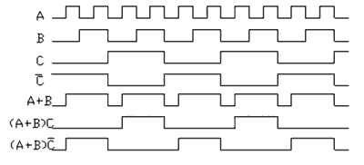 由14級串行二進(jìn)制計數(shù)/分配器CD4020B構(gòu)成分頻電路,分頻信號來自SG3525A的振蕩器輸出端引腳4。圖4中的A、B、C分別代表振蕩器脈沖經(jīng)8、9、10級分頻后的波形,其頻率分別為fA=fOSC/28,fB="fOSC/29",fC="fOSC/210"。分相電路由單片兩輸入端四與非門CD4011BC及外圍器件組成,將信號ABC邏輯組合成逆變橋所需要的驅(qū)動脈沖(A+B)C與(A+B)C信號。該驅(qū)動信號具有共同死區(qū),信號頻率約為50Hz。