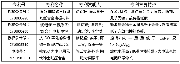 在涂銘旌院士帶領(lǐng)下,之前四川大學(xué)材料學(xué)院的博士生導(dǎo)師陳云貴教授主持完成了無釹鎳氫動力電池的開發(fā),其綜合性能在國內(nèi)外主要品牌電池的對抗試驗中處于領(lǐng)先,獲得了四項國家發(fā)明專利授權(quán)和2003年中國稀土十大科技新聞之一的榮譽(yù)。涂銘旌院士和陳云貴教授正在積極推廣此性能優(yōu)良的寬溫區(qū)鎳氫電池,展開飛機(jī)用低溫大電流放電性能優(yōu)良的鎳氫啟動電源和電動汽車用寬溫區(qū)、長壽命及低成本鎳氫電池的開發(fā)。