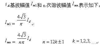 即輸入電流諧波次數(shù)為 12K±1,其幅值與次數(shù)成反比而降低。這樣使得網(wǎng)側5次和7次諧波電流大大減少。