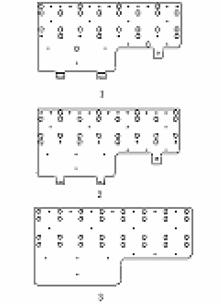 迭層功率母線共采用四層板,從下到上依次為絕緣板1,銅板負極,絕緣板2,銅板正極。圖2 是四層板的外形尺寸圖,1為銅板負極,2為銅板正極,3為絕緣板1和2。