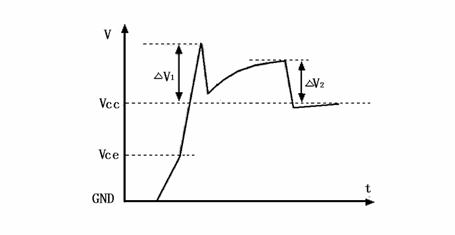 在圖5中,Vce起始電壓的毛刺ΔV1是由緩沖電路的寄生電感LS和緩沖二極管的正向恢復引起的。其主要部分取決于寄生電感LS: