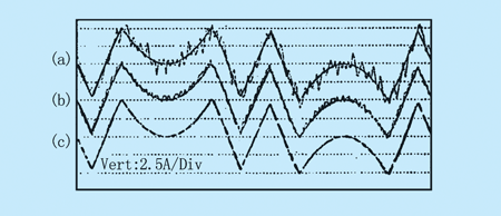 圖3所示為并聯(lián)型APF產(chǎn)生的補(bǔ)償電流,利用了電流源逆變器三種不同的調(diào)制技術(shù),分別為周期采樣(PS)、三角載波(TC)和滯環(huán)控制(HB)。PS法是在固定(采樣)頻率的方波時(shí)鐘轉(zhuǎn)移時(shí),APF的功率晶體管開(kāi)關(guān)動(dòng)作。TC法利用一個(gè)三角波和高次諧波比較,從而得到不同時(shí)刻逆變器的開(kāi)關(guān)狀態(tài)。此法的響應(yīng)速度較快,但開(kāi)關(guān)頻率不固定且較高,產(chǎn)生噪音和較大的開(kāi)關(guān)損耗與高頻失真。HB法則是給定一個(gè)允許容差帶,只要高次諧波的大小超過(guò)這個(gè)容差帶,逆變器開(kāi)關(guān)動(dòng)作。但開(kāi)關(guān)頻率、損耗及控制精度均受容差帶寬度的影響,容差帶寬越小,控制的精度越高。當(dāng)然,開(kāi)關(guān)頻率和開(kāi)關(guān)損耗也加大了。通常,HB可獲得較好的控制性能,它兼有快速響應(yīng)和簡(jiǎn)單易行的特點(diǎn)而被廣泛使用。圖3顯示HB法是這一特定波形與應(yīng)用中最好的方法,但在要求正弦波形時(shí),TC法較優(yōu)。