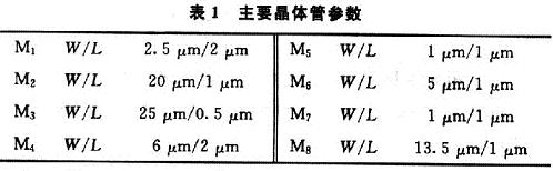 所有NMOS襯底接地,所有PMOS襯底接電源,所有開關管寬長比均為0.5μm/O.5μm。輸入信號為振幅50μA,頻率為200kHz的正弦信號,時鐘頻率為5MHz,Vref=2.4V,VDD=5V。表1中給出了主要晶體管仿真參數(shù)。