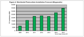 此外,預(yù)計(jì)2011年西班牙、法國(guó)和捷克的PV市場(chǎng)不會(huì)擴(kuò)張,這些國(guó)家正在推行嚴(yán)格的措施來(lái)限制其國(guó)內(nèi)的太陽(yáng)能投資熱潮。