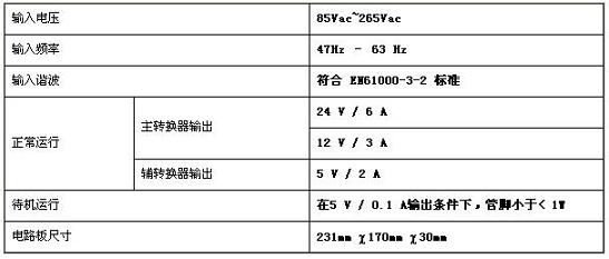 其工作原理是,如果反饋信號水平降至突發(fā)進入閾值(FB1)以下,并持續(xù)一段時間,控制IC進入主動突發(fā)模式。這時開關脈沖停止,輸出電壓則會降低,然后反饋電壓升高。當它升到突發(fā)開始水平(FB3),開關脈沖恢復。在處于突發(fā)模式期間,輸出會升高,反饋電壓開始降低。當它降到突發(fā)結束水平(FB2),開關脈沖再次停止。這種突發(fā)交替性結束開始,構成主動突發(fā)模式。如果負載由輕載提高至重載,反饋電壓值將開始提高。如果反饋電壓水平超過突發(fā)退出閾值(FB4),IC將離開主動突發(fā)模式。屏蔽時間和其他2個閾值(FB1和FB4)可有效降低錯誤觸發(fā)突發(fā)模式的幾率。最后,如果IC進入主動突發(fā)模式,最大峰值電流閾值將降至原始值的三分之一或四分之一。這可大大降低變壓器電流噪音。除了待機轉換效率,還可降低輸出電壓、主總線和輸入電壓感測功率損耗。例如,在主功率級的輸入電壓采樣部分采用4MΩ電阻分壓器。系統(tǒng)性能表1推薦解決方案的技術規(guī)格