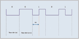 S/PDIF協(xié)議——如上文所述,它是一種單線串行接口,時鐘嵌入數據之中。傳輸的數據采用雙相標記編碼。時鐘和幀同步信號在接收器端與雙相解碼數據流一同恢復。數據流中的每個數據位都有一個時隙。時隙以一個躍遷開始,并以一個躍遷結束。如果傳輸的數據位是“1”,則時隙中間還會增加一個躍遷。數據位“0”則不需要額外躍遷,躍遷之間的最短間隔稱為單位間隔(UI)。