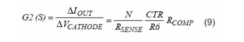 VCATHODE是AS431的陰極電壓,也就是誤差補(bǔ)償放大器的輸出電壓。CTR是光耦的電流傳輸比。R5(原文為R6,譯注)是與光耦的二極管串聯(lián)的限流電阻。RCOMP是AS3842的COMP腳當(dāng)其試圖拉電流超過它的最大輸出電流時的輸出阻抗。