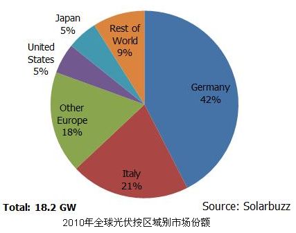 根據(jù) Solarbuzz 最新年度光伏市場(chǎng)報(bào)告2011 Marketbuzz,2010年全球光伏市場(chǎng)安裝量達(dá)到18.2GW,相較于去年增幅139%。