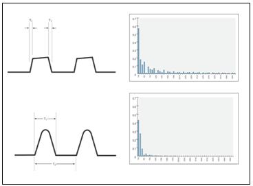 然而,在變頻的設計,因為它基本上是一個半波整流的正弦波,沒有涉及電流波型的上升及下降陡邊的高頻份量。因此,變頻轉換器的波型頻譜幅度較低,帶寬也較窄。