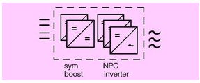 這里標準的應(yīng)用是使用三相全橋電路??紤]到直流母線電壓會達到1000v,那開關(guān)器件就必須使用1200v的。而我們知道,1200v功率器件的開關(guān)速度會比600v器件慢很多,這就會增加損耗,影響效率。對于這種應(yīng)用,一個比較好的替代方案是使用中心點箝位(npc=neutral point clamped)的拓撲結(jié)構(gòu)(見圖8)。這樣就可以使用600v的器件取代1200v的器件。