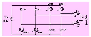 圖22 采用2個sic二極管、4個si二極管和分別輸出方式的npc逆變器拓撲