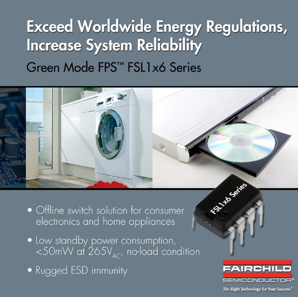 飛兆半導(dǎo)體公司 (Fairchild Semiconductor)近期開發(fā)出FSL1x6 系列綠色模式飛兆功率開關(guān) (FPS)器件,這些集成式PWM控制器帶有專有的綠色模式功能,提供了先進的間歇模式控制,并在間歇模式下關(guān)閉部分功能模塊減小控制器自身操作電流,從而最大限度地降低待機功耗。