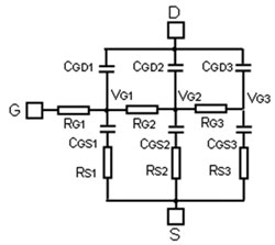 從圖2可以看出:在開通的過程中,漏極的電流ID在逐漸增大,離柵極管腳距離近的晶胞單元的電壓大于離柵極管腳距離遠的晶胞單元的電壓,即VG1>VG2>VG3>…,VGS電壓高的單元,也就是離柵極管腳距離近的晶胞單元,流過的電流大,而離柵極管腳距離較遠的晶胞單元,流過的電流小,距離最遠地方的晶胞甚至可能還沒有導通,因而沒有電流流過。電流大的晶胞單元,它們的溫度升高。