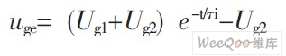 若Q1處于全導(dǎo)通狀態(tài), 二極管D1處于截止?fàn)顟B(tài), 二極管中的電流為0, Uce為IGBT管壓降,Uge=Ug1, 輸入電壓由Ug1變?yōu)?Ug2, Cge和Cgc被反向充電, uge下降, 此時(shí)Uge可表示為: