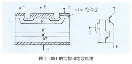 由圖1可見,IGBT是由一個MOS和一個npnp四層結(jié)構(gòu)集成的器件。而MOS是金屬—氧化物—半導(dǎo)體場效應(yīng)管的簡稱。其中,氧化物通常是硅襯底上氧化而生成的SIO2,有時還迭加其他的氧化物層,例如Si3N4,Al2O3。通常設(shè)計這層SiO2的厚度ts: 微電子系統(tǒng):ts<1000A 電力電子系統(tǒng):ts≥1000A。