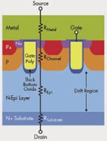 這種方案不僅有助于減小柵-漏疊加電容CGD,還能改善漂移區(qū)阻抗。此外,它也有利于降低導(dǎo)通阻抗與柵極電荷,因?yàn)楝F(xiàn)在可以一方面通過(guò)薄柵極氧化層來(lái)獲得更低的Vth與導(dǎo)通阻抗,同時(shí)又還可以在溝槽底部采用加厚氧化層以獲得最低的CGD。還有一種技術(shù)就是采用電荷平衡或超級(jí)結(jié)器件結(jié)構(gòu)。它最初是針對(duì)高壓器件開(kāi)發(fā)的,現(xiàn)在也可用于低壓器件。利用電荷平衡方案,可以在漂移區(qū)獲得兩維電荷耦合,因而能夠在漂移區(qū)采用更高的摻雜濃度,最終降低漂移阻抗。相比前代技術(shù),這種新型中壓功率MOSFET不僅在特征阻抗方面有大幅度改進(jìn),同時(shí)其原本相當(dāng)出色的開(kāi)關(guān)特性也得到進(jìn)一步提高。