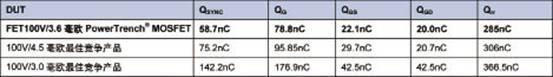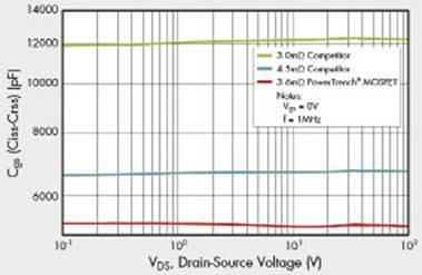 圖8 100V柵-源電容/3.6毫歐PowerTrench MOSFET與競(jìng)爭(zhēng)產(chǎn)品的比較