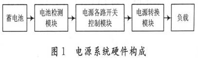 本電源系統(tǒng)各部分主要實現(xiàn)的功能如下:供電電源由2塊12 V的鉛酸蓄電池串聯(lián)而成,為系統(tǒng)提供24 V的直流電壓;電池檢測模塊主要是通過對供電電源的輸出電壓進行取樣,以獲取蓄電池的電量消耗信息,實時對電池充電以保證整個系統(tǒng)正常穩(wěn)定的工作;電源各路開關控制模塊主要是根據(jù)系統(tǒng)負載的工作狀態(tài),通過開關控制決定是否為該負載供電,以此來降低待機功耗,延長電池的使用時間;電源變換模塊主要用模塊DC-DC轉(zhuǎn)換器作為構建單元實現(xiàn)電源電壓的轉(zhuǎn)換為負載提供合適的電壓。