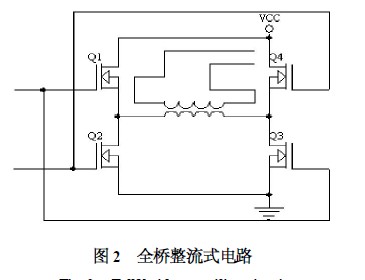 (2) 全橋整流式電路。圖2 所示為全橋整流式電路。該方案采用了4 個(gè)MOS 管,工作時(shí)對(duì)管同時(shí)導(dǎo)通,半周期內(nèi)Q1、Q3 導(dǎo)通,Q2、Q4 截止,然后Q2、Q4 導(dǎo)通,Q1、Q3 截止。這樣的工作方式使每半周期都有2 個(gè)MOS 管來分壓,對(duì)MOS管的耐壓要求就降低了,適用于高壓場(chǎng)合,但由于使用了4個(gè)MOS 管,使得損耗功率增加,開關(guān)損耗同時(shí)增加。考慮到農(nóng)業(yè)機(jī)械一般功率較大,采用該方案必然降低電能利用率,導(dǎo)致大量的能耗損失。