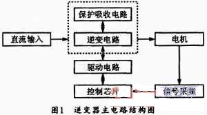 圖1為典型的逆變器結(jié)構(gòu)原理圖。它由三部分組成:逆變電路、驅(qū)動(dòng)保護(hù)電路、控制與信號(hào)采集電路。