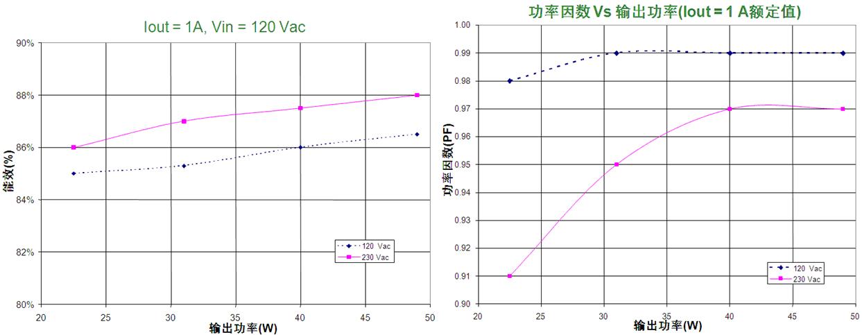 這90 W恒壓恒流演示板接受90至265 Vac的擴(kuò)展通用輸入電壓(更換元件條件下可支持305 Vac),提供0.7 A至1.5 A的恒定電流輸出范圍(可通過微幅調(diào)節(jié)電阻來選擇)及30 V至55 V的恒定輸出電壓范圍(可通過電阻分壓器來選擇),最大輸出功率90 W,支持50至1,000 Hz調(diào)光控制,并包含可連接至可選調(diào)光卡的6引腳接口,用于模擬電流調(diào)節(jié)/雙亮度等級(jí)數(shù)字調(diào)光等智能調(diào)光應(yīng)用。此外,這演示板還提供短路保護(hù)、開路保護(hù)、過溫保護(hù)、過流保護(hù)及過壓保護(hù)等豐富保護(hù)特性。測(cè)試顯示,這演示板在50 W輸出功率、1,000 mA輸出電壓/48 V正向壓降條件的能效高于87%(詳見表1),在50%至100%負(fù)載條件下功率因數(shù)高于0.9,同時(shí)符合IEC61000-3-2 C類設(shè)備諧波含量標(biāo)準(zhǔn)。