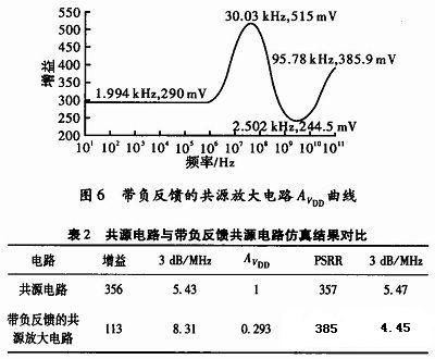 由于負反饋保證了輸出端電壓跟隨輸入端電壓,穩(wěn)定了電路。且抑制了來自像電源等其它節(jié)點的干擾,并給出了較低的電源到輸出端的增益,因而改善了整個電路的PSRR。