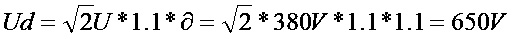 電網(wǎng)電壓為380V,不考慮波動,空載直流電壓Ud0約為線電壓峰值540V。在帶負(fù)載時,電壓有所下降,電容電壓:
