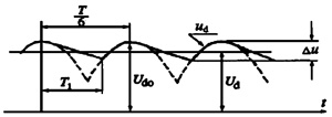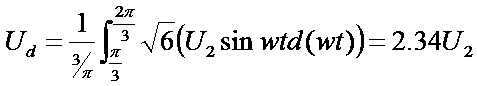 整流輸出電壓Ud的波形在一個周期內(nèi)波動6次,且脈動波形相同,因此: