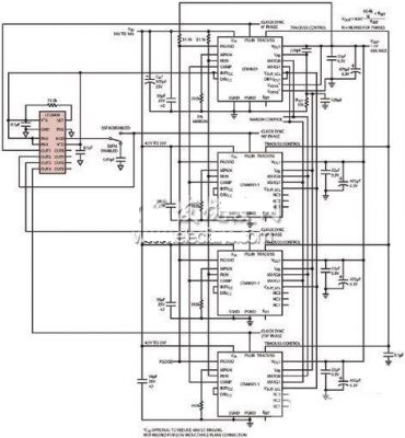 有些應(yīng)用集中于用4個并聯(lián)的μModule穩(wěn)壓器取代單個開關(guān),這將通過多相同步降低峰值開關(guān)電流。這些開關(guān)是由一個相位變化的時鐘從外部驅(qū)動的。每個開關(guān)的接通時刻之間都是有間隔的,從而在輸入中產(chǎn)生均勻的電流分布。在這種大功率系統(tǒng)中,電壓紋波降低了。同步并聯(lián)穩(wěn)壓器的關(guān)鍵優(yōu)勢是,由于消除了輸入和輸出中的紋波電流,減小了輸入和輸出電容器的尺寸,從而消除了對大容量電容器的需求。