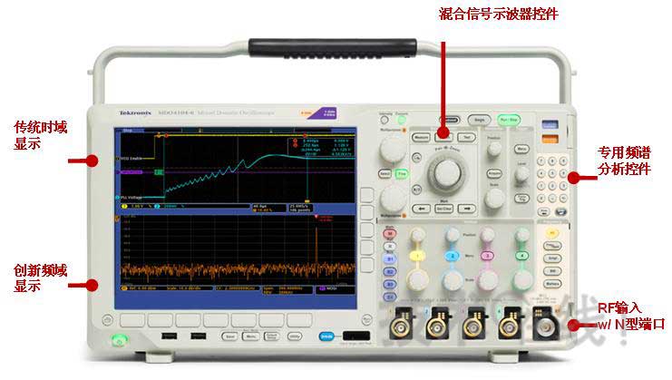 泰克8月31日宣布,推出全球首款集示波器、頻譜分析儀、邏輯分析儀和協(xié)議分析儀于一體的混合域示波器MDO4000系列。其主要特點是:可提供捕獲時間相關的模擬、數(shù)字和RF信號的系統(tǒng)級觀測。這種時域和頻域間的關聯(lián),目前其他廠商還無法實現(xiàn)。泰克為此正在申請包括Spectrum Time在內的26項專利技術。