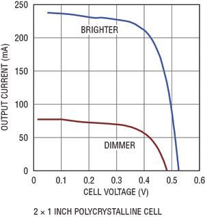 相比之下,靠室內(nèi)照明光工作的設(shè)備可用能量要少得多。常見的室內(nèi)照明光的強(qiáng)度約為充足太陽(yáng)光的0.25%(室內(nèi)照明光強(qiáng)度與太陽(yáng)光強(qiáng)度的巨大差別難以察覺(jué),因?yàn)槿搜勰苓m應(yīng)很寬的光照強(qiáng)度范圍)。室內(nèi)應(yīng)用可用的光照量低得多,因此呈現(xiàn)了一些設(shè)計(jì)上的挑戰(zhàn)。即使面積為4平方英寸的大型高效率晶體電池,在典型辦公室照明條件下,也僅能產(chǎn)生860μW功率。