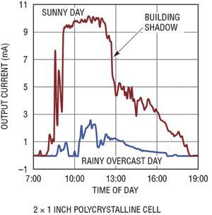 用光伏電池可產(chǎn)生多少功率取決于多種因素。電池的輸出功率與投射到電池上的光強(qiáng)度、電池的總面積以及電池的效率成正比。大多數(shù)光伏電池都規(guī)定在完全直射的太陽(yáng)光 (1000W/m2) 下使用,但是在大多數(shù)應(yīng)用中,不可能有這么理想的條件。就依靠太陽(yáng)光工作的設(shè)備來(lái)說(shuō),可從電池獲得的峰值功率可能非常容易變化,由于天氣、季節(jié)、煙霧、灰塵和太陽(yáng)光入射角的變化,今天與明天相比有可能相差10倍。在充足的太陽(yáng)光照下,晶體電池視電池特性的不同而有所不同,典型輸出功率約為每平方英寸40mW。面積為幾平方英寸的光伏電池足夠給多個(gè)遠(yuǎn)程傳感器供電以及給電池涓流充電了。