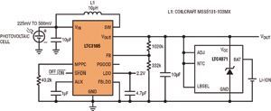 另一個(gè)關(guān)鍵考慮因素是能量存儲(chǔ)器件的充電速率。例如,最大充電電流為300μA的鋰離子幣形電池需要在電池和 LTC3105輸出之間有一個(gè)大的電阻器,以防止過(guò)流情況。這可能限制能收集的能量,從而減少可用于應(yīng)用的能量。