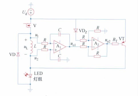 LED 燈組為n 個(gè)大功率LED 串聯(lián)連接,UO =nUF為LED 燈組壓降; UF為單個(gè)LED 的導(dǎo)通壓降。