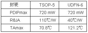 需要注意的是,NCP1529同時(shí)提供TSOP-5和µDFN-6封裝,我們可以快速地確定每種封裝選擇對(duì)工作性能的影響。表1歸納了各種封裝的功率耗散、封裝熱阻抗和計(jì)算出的最高環(huán)境溫度。