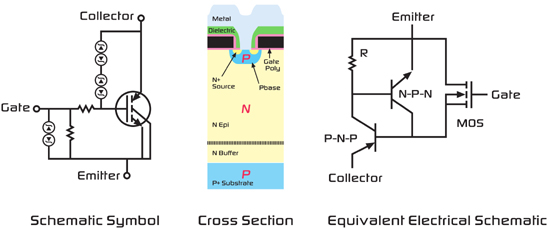 很多年前,IGBT就已成為點(diǎn)火應(yīng)用中的開關(guān)。圖2所示為IGBT的剖面圖。較之于其它技術(shù),IGBT有如下一些重要優(yōu)點(diǎn):