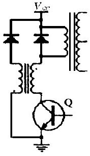 4) 無源回饋開通緩沖電路(圖5) :此電路通過變壓器將磁場貯能回饋到電源。變壓器為雙線繞制,其原邊具有一定電感;幅邊的極性與原邊相反,并且接有反向二極管。管子開通時(shí),原邊承受全部電源電壓,副邊無通電回路。管子關(guān)斷時(shí),副邊感應(yīng)電壓極性換向,當(dāng)其電壓高于電源電壓Vcc 時(shí), 向電源饋送能量。