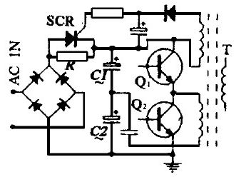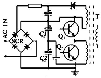 筆者在1000W半橋式開關(guān)電源的設(shè)計(jì)中, 首次用一個(gè)單向可控硅代替前端AC 輸入整流橋的一個(gè)橋臂, 其控制端由主變壓器的一個(gè)副繞組來控制(如圖9 所示) .這樣, 在電源接通的初始態(tài), 該整流橋處于半波整流態(tài)。待電源啟動(dòng)后, 可控硅導(dǎo)通, 整流橋轉(zhuǎn)為全波整流。由此可達(dá)到降低啟動(dòng)電壓的目的。同時(shí), 還可有效地抑止浪涌電流。實(shí)踐證明, 該電路簡單可靠很值得大家借鑒。