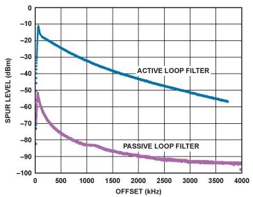 電荷泵將鑒相器誤差電壓轉(zhuǎn)換為電流脈沖,并通過PLL環(huán)路濾波器進行積分和平滑處理。電荷泵通??稍谧疃嗟陀谄潆娫措妷海╒P)0.5 V的電壓下工作。例如,如果最大電荷泵電源為5.5 V,那么電荷泵只能在最高5 V輸出電壓下工作。如果VCO需要更高的調(diào)諧電壓,則通常需要有源濾波器。有關(guān)實際PLL的有用信息和參考設計,請參見電路筆記CN-0174,5,處理高壓的方式請參見利用高壓VCO設計高性能鎖相環(huán),"6該文章發(fā)表于模擬對話第43卷第4期(2009)。有源濾波器的替代方案是使用PLL和針對更高電壓設計的電荷泵,例如ADF4150HV ADF4150HV可使用高達30 V的電荷泵電壓工作,從而在許多情況中省去了有源濾波器。