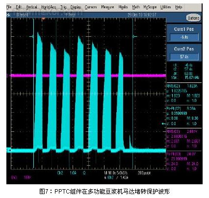 由以上的試驗證明,TE connectivity公司研發(fā)出的LVR PPTC和功率電阻集成在一起的組件既可以滿足馬達的保護時間的要求,又可以在一次完整的磨制豆?jié){的周期內(nèi)不誤動作,達到了設計和保護要求。