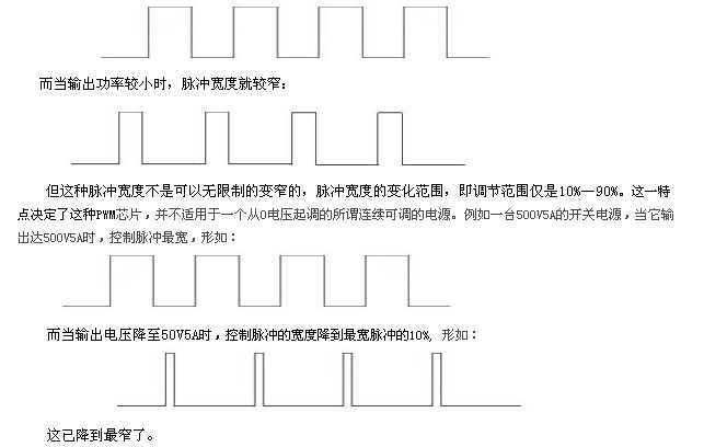 但所謂PWM芯片,是一種脈寬調(diào)制器,當(dāng)輸出電壓較高,輸出電流較大時,電源內(nèi)部的開關(guān)管開通時間較長而關(guān)斷時間較短: