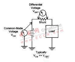 我們還要考慮到另一種共模情況:電源線路的分路開啟,且接地短路的情況。這時(shí)共模電壓為零。電流流動(dòng)時(shí)必須進(jìn)行檢測(cè),也就是說(shuō),放大器在零共模電壓時(shí)也要能正常工作。