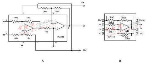 老式分路檢測(cè)電路基于差動(dòng)放大器,即周圍帶四個(gè)電阻來(lái)設(shè)置增益并提供差動(dòng)輸入的運(yùn)算放大器 (operation amplifier)。這些電阻使運(yùn)算放大器能接受超過(guò)其電源軌的共模電壓。不過(guò),這也會(huì)帶來(lái)下面一些負(fù)面問(wèn)題:一是電路必須配置為衰減器,在隨后的運(yùn)算放大器級(jí)中恢復(fù)增益,如圖 2A 中的 IC 結(jié)構(gòu)圖所示,運(yùn)算放大器的增益會(huì)成倍增大第一個(gè)放大器的偏置和漂移量,從而降低整體性能。二是采用高共模電壓差動(dòng)放大器要增加電阻網(wǎng)絡(luò),以使之在仍然只提供單位增益的同時(shí)能夠接受較高的共模電壓。高共模差動(dòng)放大器帶來(lái)的影響在于:運(yùn)算放大器的噪聲增益與共模衰減成正比,如圖 2B 所示的差動(dòng)放大器結(jié)構(gòu)采用了 20:1 的內(nèi)部共模衰減,此舉使放大器的偏置、漂移和噪聲都比運(yùn)算放大器本身擴(kuò)大了 20 倍。此外,較大的輸入電阻也會(huì)造成較高的噪聲。