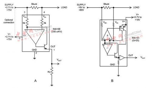 電流分路.是專門用于分路電流檢測(cè)的高共模電壓差動(dòng)放大器,能夠解決電阻型差動(dòng)放大器的局限性。電流分路.與差動(dòng)放大器相比的主要區(qū)別在于:其共模電壓功能通常只擴(kuò)展到正電壓,而一些電流分路.允許共模接地。這會(huì)造成更多的衍生情況,我們隨后還要談到。共模電壓功能也允許擴(kuò)展到負(fù)電壓。電流分路.從一開始設(shè)計(jì)時(shí)就是以單電源電壓工作的,通常最低電壓可達(dá) 2.7V。圖 3 顯示了兩類電流分路.,分為電流輸出型分路.和電壓輸出型分路.。電流輸出型分路.通常靜態(tài)電流較低,需要外部輸出電阻,從而使終端用戶能夠設(shè)定增益。電壓輸出器件采用固定增益且不需要其他組件。