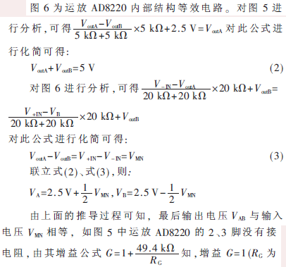 圖5為電壓輸出采集電路,M、N兩點(diǎn)間的電壓接運(yùn)放AD8220,再經(jīng)運(yùn)放OP1177處理后,得到輸出電壓VoutA、VoutB,此電壓最后接色譜工作站或接AD轉(zhuǎn)換器和單片機(jī)進(jìn)行處理,可檢測物質(zhì)的成分和含量。