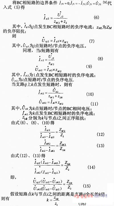 本文結(jié)合我國配電網(wǎng)的實(shí)際情況,提出首先采用比較各節(jié)點(diǎn)電壓確定故障區(qū)段,然后將故障區(qū)段始端故障負(fù)序電壓與本線路始端和末端短路時(shí)的負(fù)序電壓進(jìn)行運(yùn)算,從而能夠找出故障點(diǎn)的確切位置。本方法簡單實(shí)用,在故障發(fā)生時(shí)僅需作出對比判斷,大大節(jié)省了計(jì)算時(shí)間,誤差分析表明本方法有較高的準(zhǔn)確度。